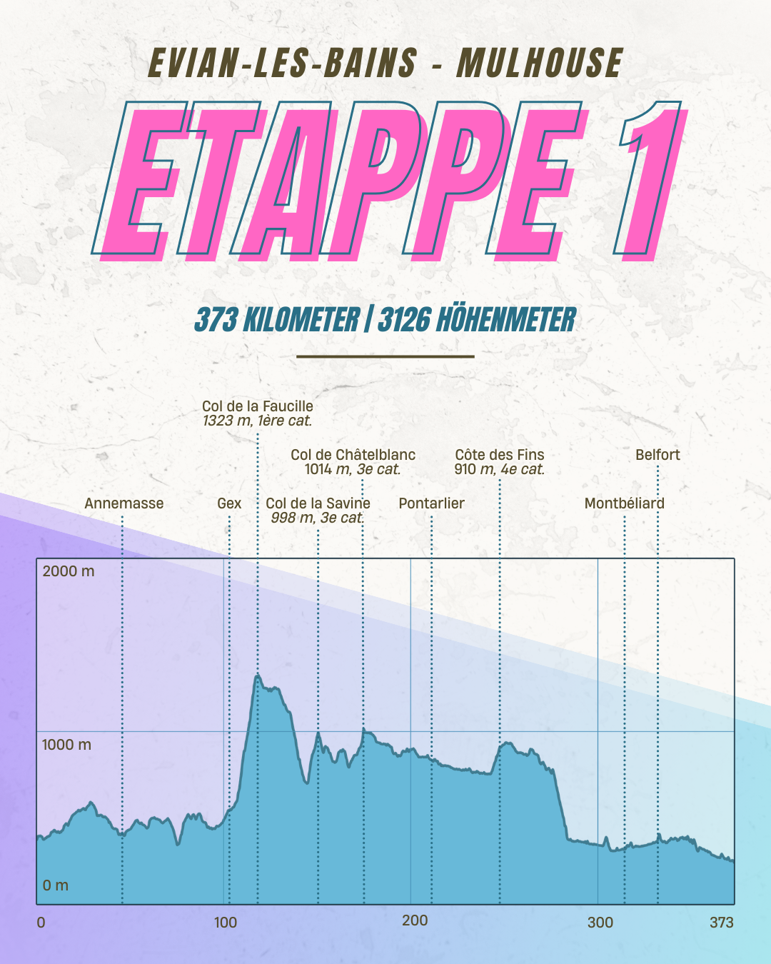 Die 1. Etappe startete am Südufer des Genfer Sees in Évian-les-Bains.